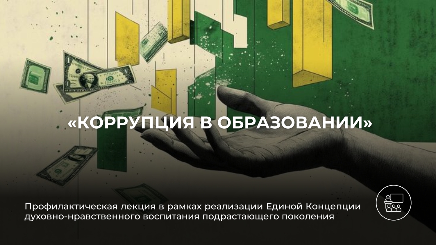 Лекцию провела Луиза Кадырова, сотрудница галереи. В своём выступлении она подробно рассмотрела проблему коррупции в образовательной сфере, обратив особое внимание на её разрушительное влияние на формирование личности молодого человека.